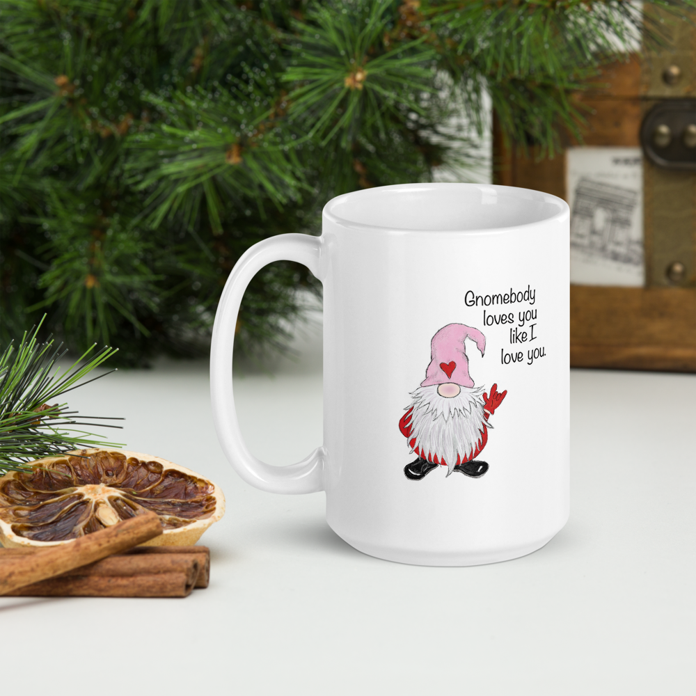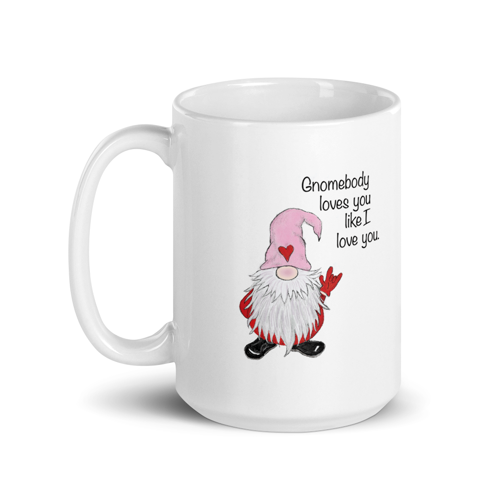A gnome signs "I Love You" along with a play on words saying "Gnomebody (nobody) loves you like I love you".
