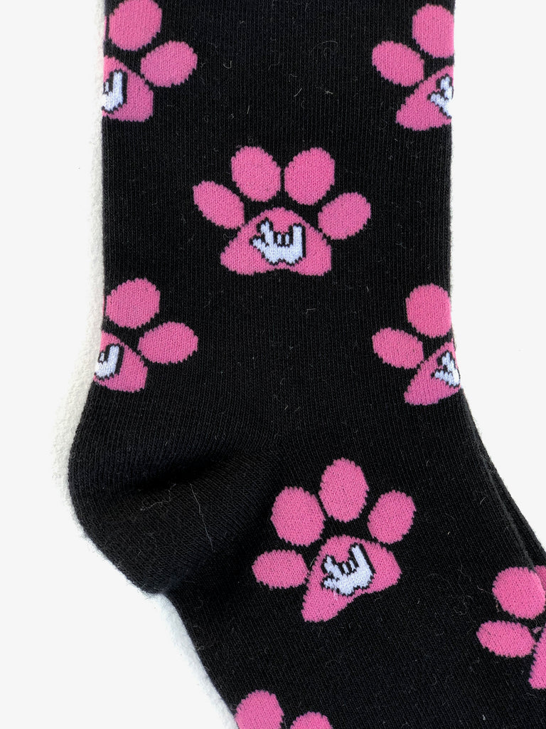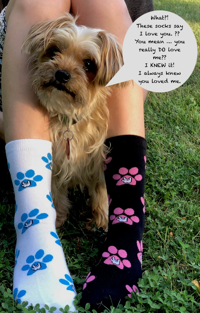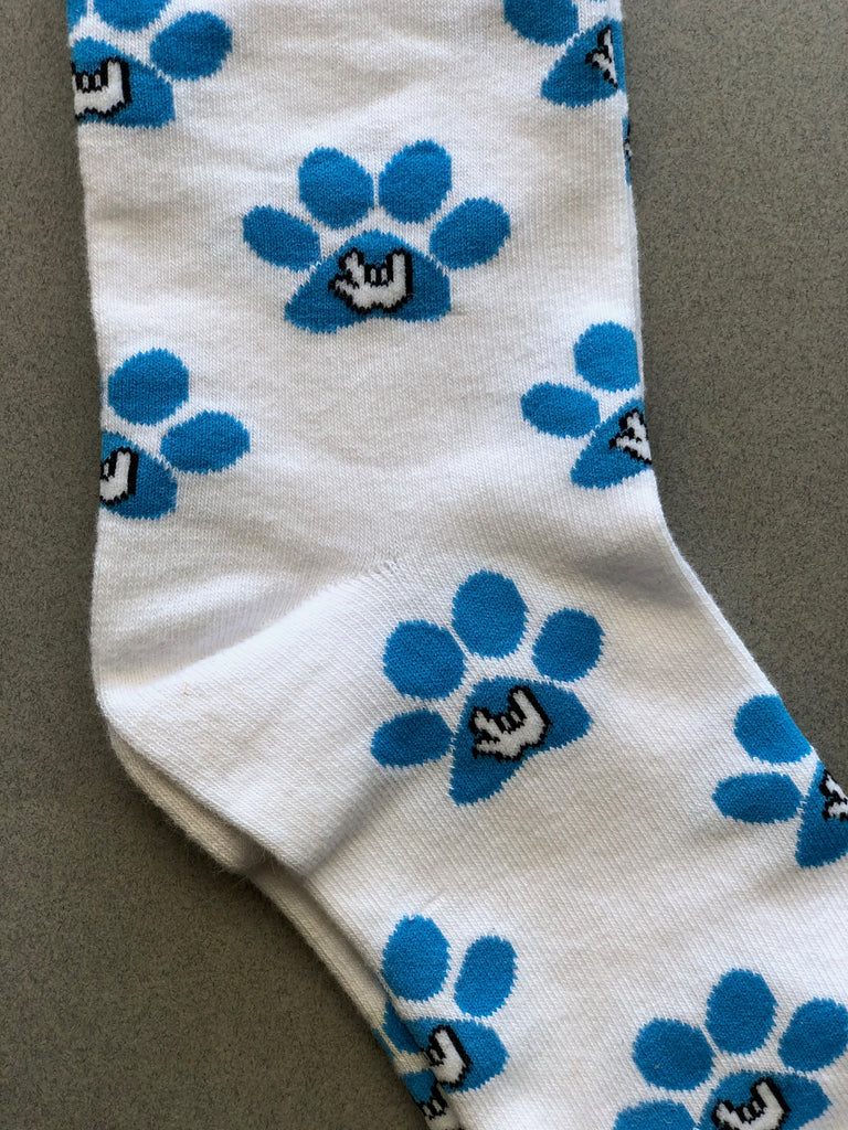 These socks have the ASL "I Love You" hand inside a dog paw. If you love dogs as much as I do than these socks are a great addition to your dog loving world.