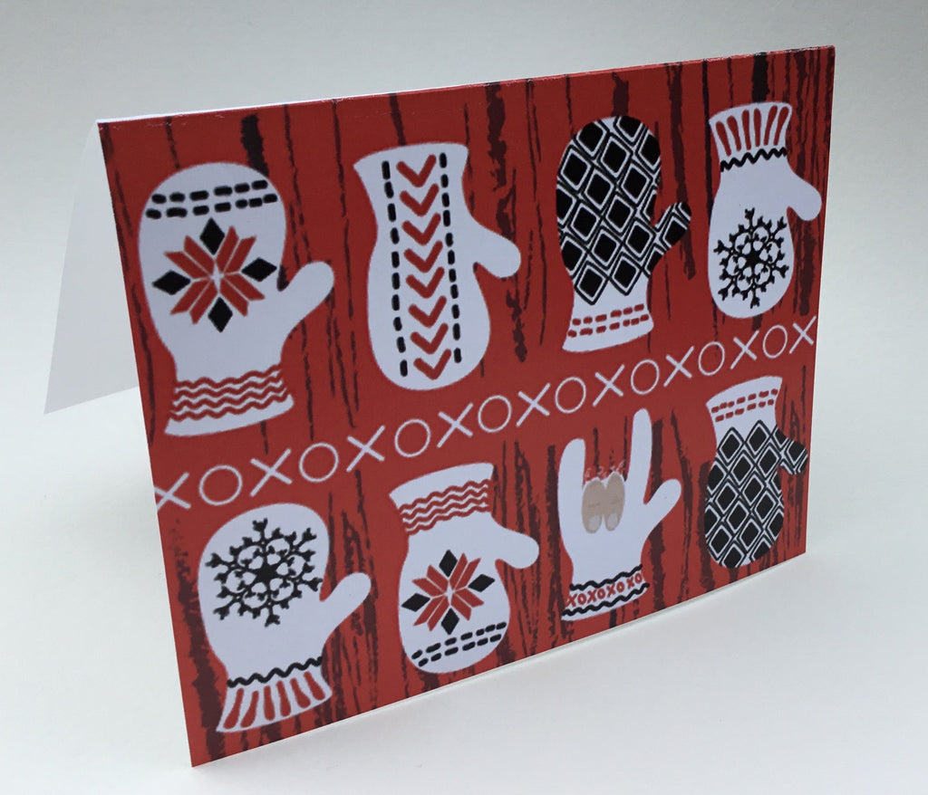 I love mittens. They are so cozy and warm. The Scandinavian colors and designs add to the charm of a mitten. BUT if you sign they are not helpful at all. In this card you can see one hand needed to bust through the mitten to sign "I Love You".